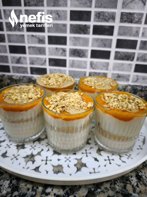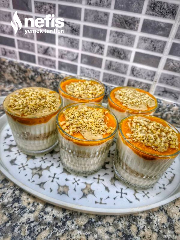 - Kuplarımıza birkaç kaşık muhallebi ,ara katına birkaç kaşık petibör bisküvi daha sonra birkaç kaşık yeniden muhallebi katıp en üstüne de kabaklardan birkaç kaşık katıp düzleştiriyoruz, isterseniz pasta sıkma torbasıyla da hal yapabilirsiniz benim konutumda yoktu ben kaşıkla düzleştirdim.