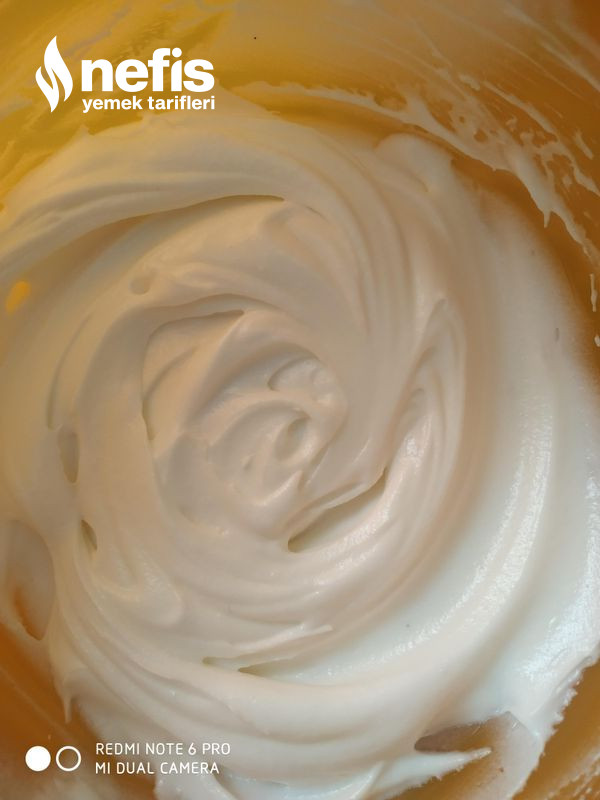 4. Fırından çıkarttığımız kurabiyemizi soğumaya bırakıp kremşantimizi su ile hazırlayalım buzdolabımızda bekletelim.