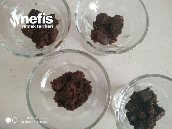 6. Pişirdiğimiz kurabiyemizi elimizle parçalayarak krem şanti ile karıştıralım. İsteğimize nazaran kakao ekleyebiliriz karışımımıza.