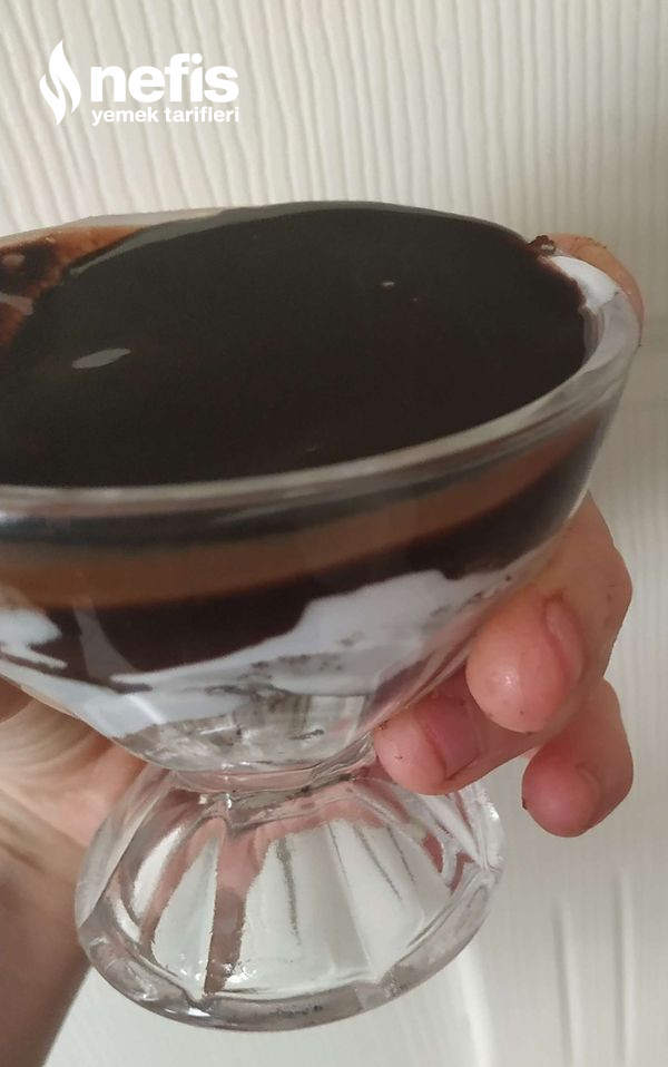 7. Dondurma kaselerimize eşit olacak formda paylaştırarak üzerine 3 yemek kaşığı çikolatamızdan ekleyelim buzluğumuzda bekletelim.