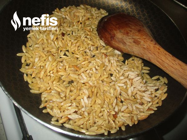 - Tencereye 3 bardak suyu koyalım kaynamaya bırakalım. Tavaya yağı bir su bardağı şehriyeyi koyalım. Kısık ateşte pembeleşinceye kadar kavuralım.