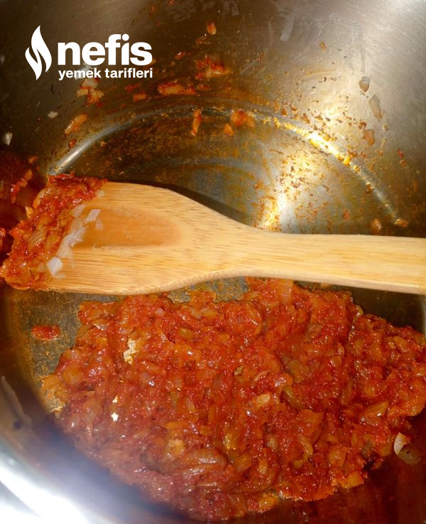 - Salçayıda ekleyip o biçimde de kokusu çıkana kadar kavurun.