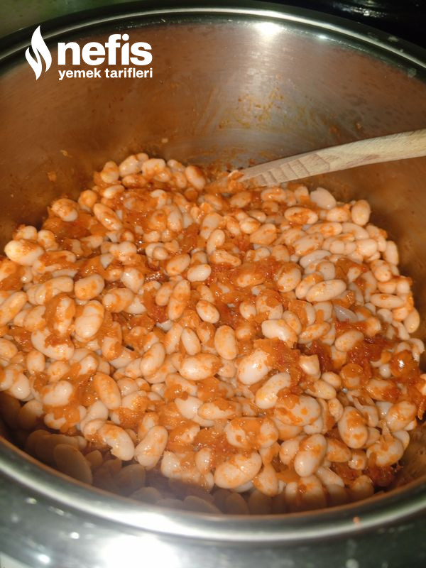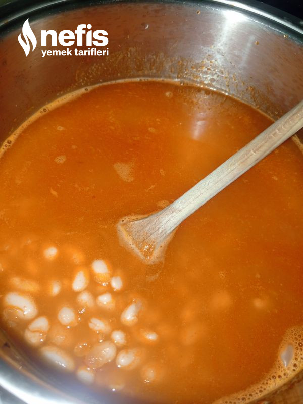 - Fasulyeyi de ekleyip güzelce karıştırıp, suyunu ekleyin. Yaklaşık 20 dakika pişirin.