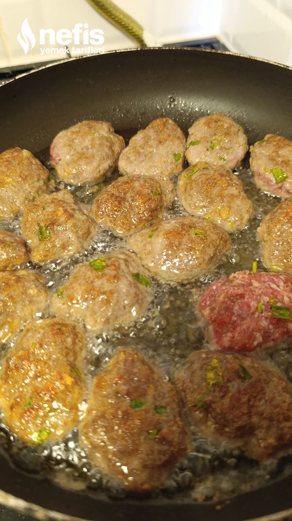 - Tavada sıvı yağımızı kızdırıp şekillendirdiğimiz köfteleri kızartıyoruz.Afiyet olsun🤗☺️.