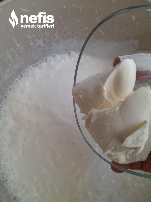 2. Soğuk süt ve krem şantiyi derin bir kapta çırpalım labneyi ekleyelim tekrar çırpalım.