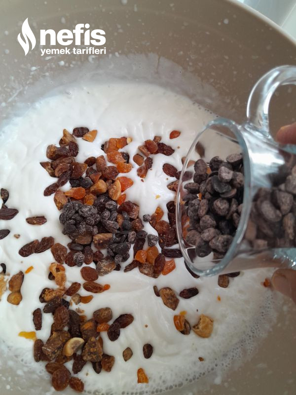 • 1 su bardağı doğranmış kuru meyve (kayısı, incir, üzüm, hurma karışık)