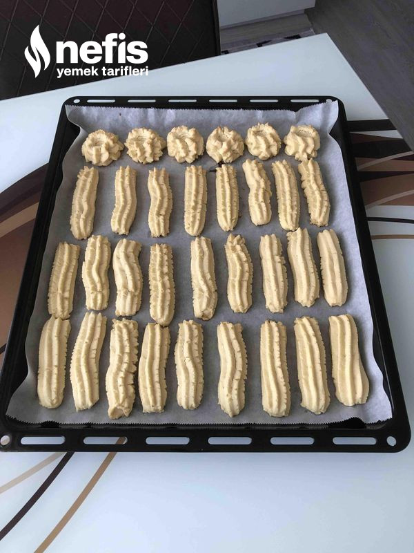 - Yıldız duy ile hamuru uzunlama form verip pişirme kağıdı tepsiye dizelim.