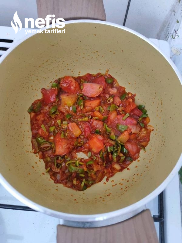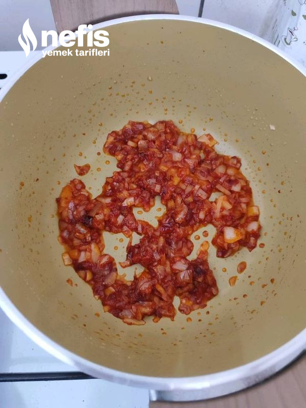 - Soğanı küçük küçük doğrayıp salça ile yağda kavuruyoruz.