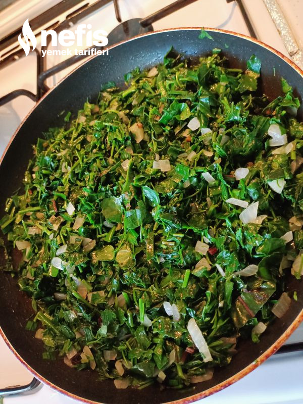 - Yarım dakika kadar çok hafif kavurup altını kapatalım, bu ortada yeşilliklerimiz suyunu salacaktır suyunu süzelim.