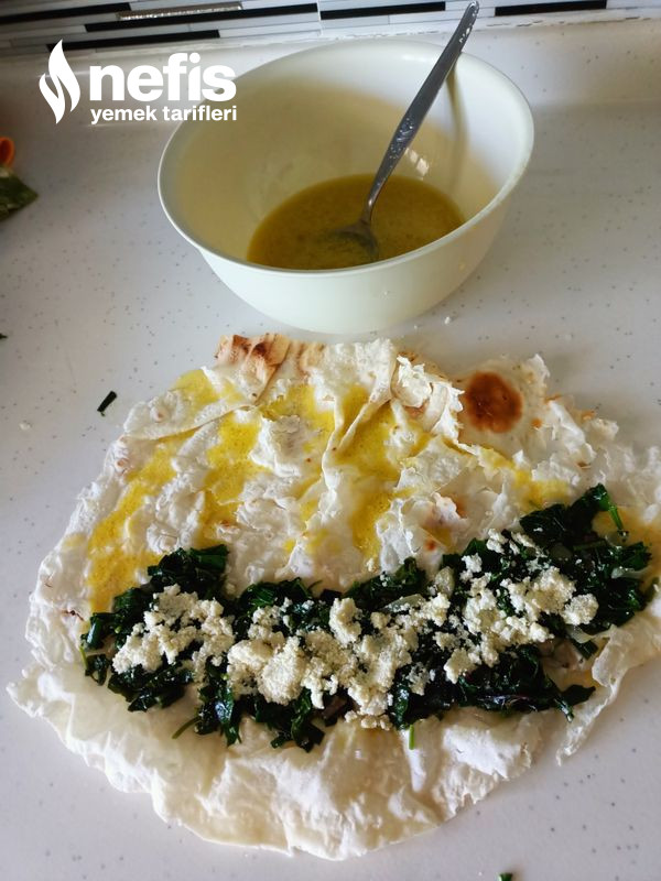 - Yufkalarımızın üzerlerine hafifçe su serperek yumuşatalım yufkalarımızı dörde keselim geniş tarafına kavurduğumuz evvel otları onun üzerine de peynirimizi koyup rulo yapalım.