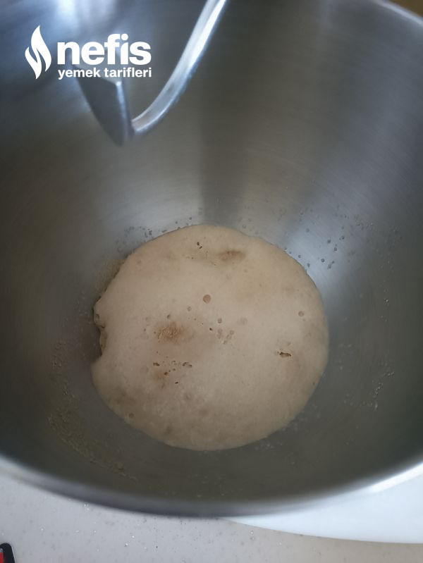 1. Şeker ve ılık suyu kaba ek ediyoruz mayalanması için bekliyoruz 10 dk.
