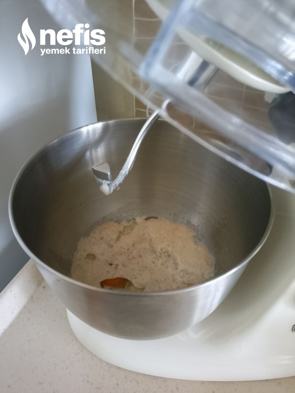 2. Daha sonra ılık süt, sıvı yağ ve yumurtayı tuzu ek edip karıştırıyoruz. Unu azar azar ekleyip güzelce yoğurmaya başlayalım. Hamur kıvama geldikten sonra 5-10 dakika daha yoğurup nemli bir bezle 15 dakika dinlenmeye alalım.