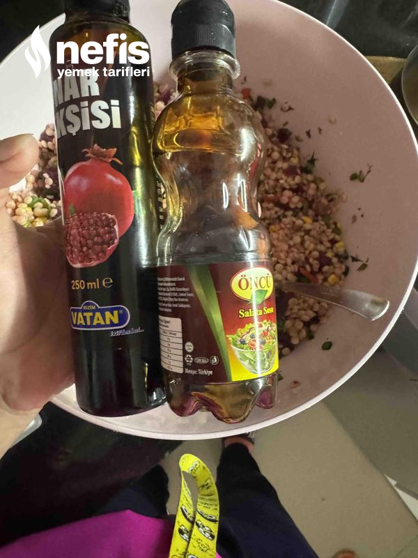 3. Bütün materyaller birebir kapta buluşturup bir hoş karıştıralım. Limonu, tuzunu, nar ekşisi damak tadımız nazaran ayarlayalım afiyet olsun.