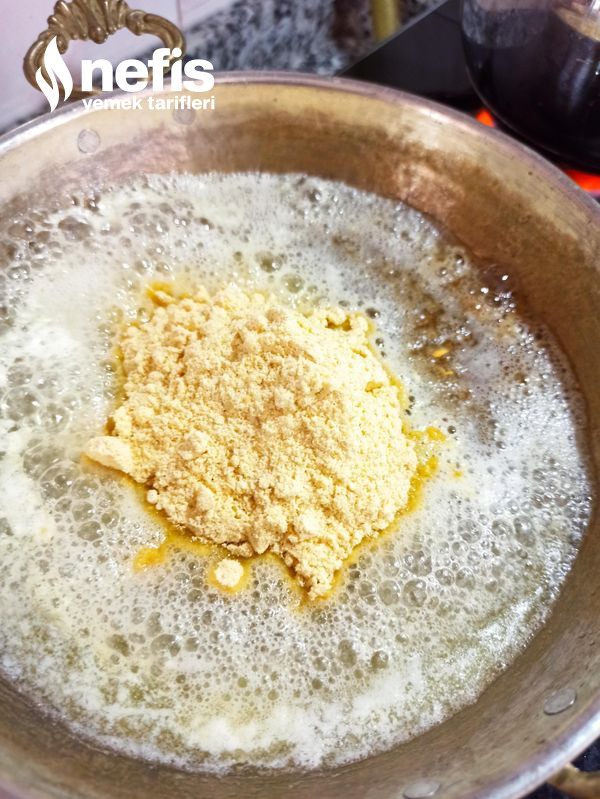 - Mısır unumuzu eriyen tereyağın üzerine ek edelim ve hafif rengini değiştirene kadar karıştırarak kavuralım.