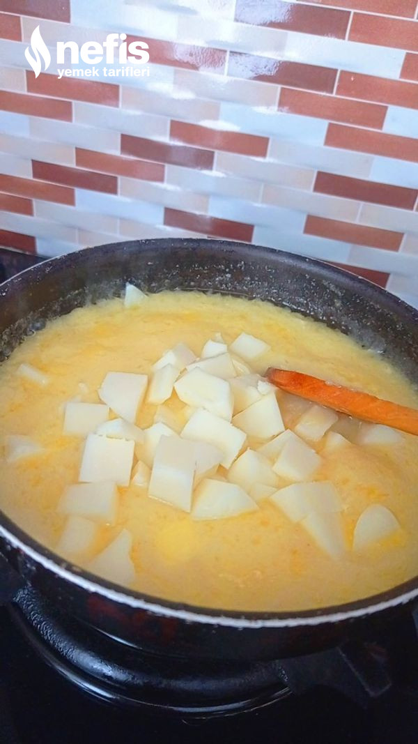 2. Kıvam aldıktan ve kaynadıktan sonra içine küp küp doğradığımız kolot peyniri yahut kaşar peyniri ekleyelim ve peynirler yeterlice eriyip uzayana kadar kısık ateşte karıştırarak pişirelim 👌👌