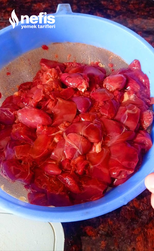 2. Temizlediğimiz ciğeri küp küp doğrayalım çok fazla küçük doğramayın. Daha sonra yıkıyalım ve süzelim kenara alalım.
