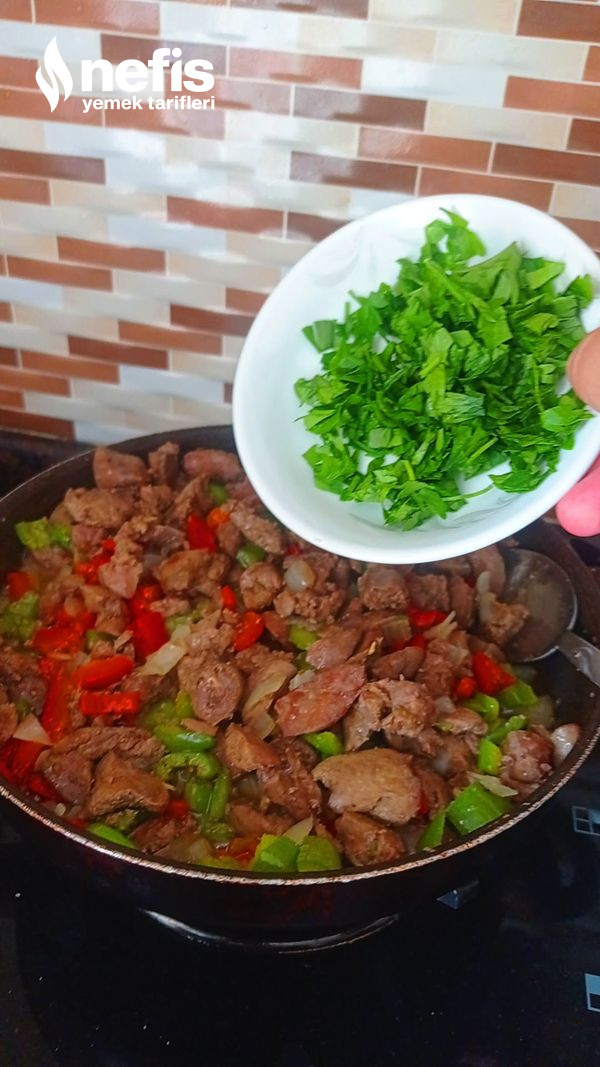8. Yumuşacık pişen ciğer kavurmamız servise hazır. Afiyet olsun 🙏.