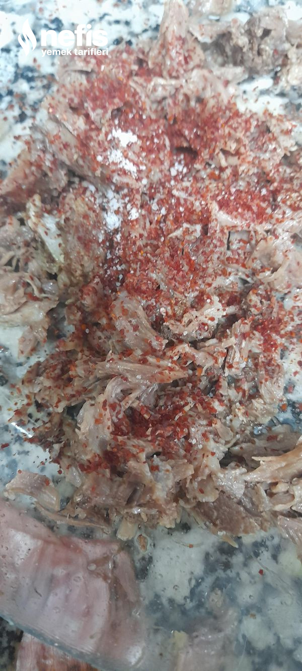 • 100 gr haşlanmış kuzu eti (didiklenmiş yahut minik minik doğranmış)