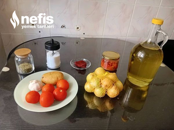 10. Uygun bir kabın içine bir çay kaşığı tuz ve kekiği, bir yemek kaşığı zeytinyağını, bir yemek kaşığı domates salçasını bir yemek kaşığı domates sosunu (veya püresini) ekleyelim.