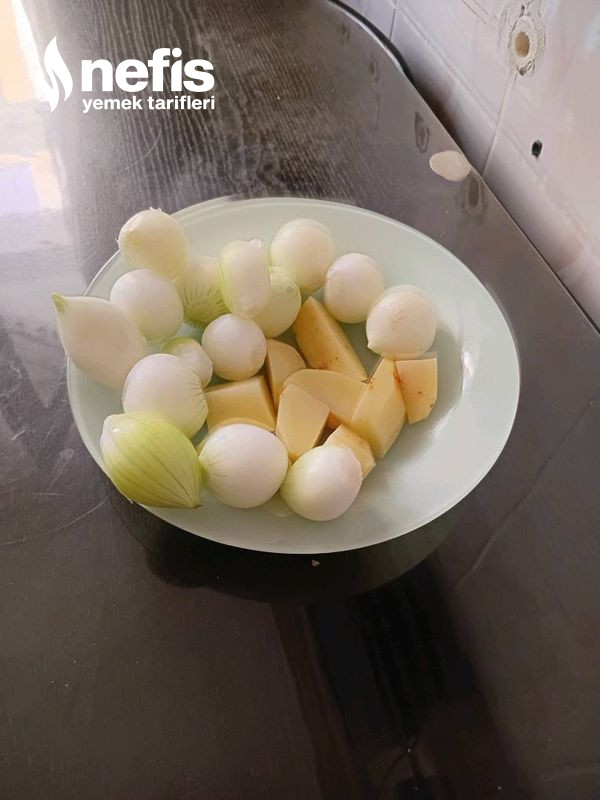 7. Arpacık soğanlarının kabuklarını soyalım ve bütün halde bırakalım.