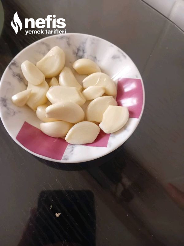 8. 1 baş sarımsağın kabuğunu soyup, dişlerine ayıralım.