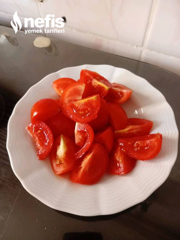 9. Domateslerimizi dilimleyelim. Kaça böleceğinizi kendi zevkinize nazaran ayarlayabilirsiniz. Artık sosumuzu hazırlayabiliriz.