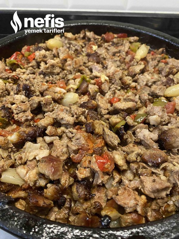 2. Üstlerine tuz ve pul biber attıktan sonra eti ek edelim.