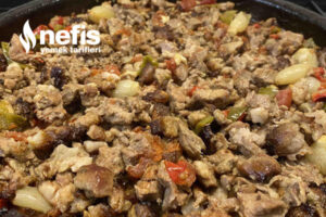 2. Üstlerine tuz ve pul biber attıktan sonra eti ek edelim.