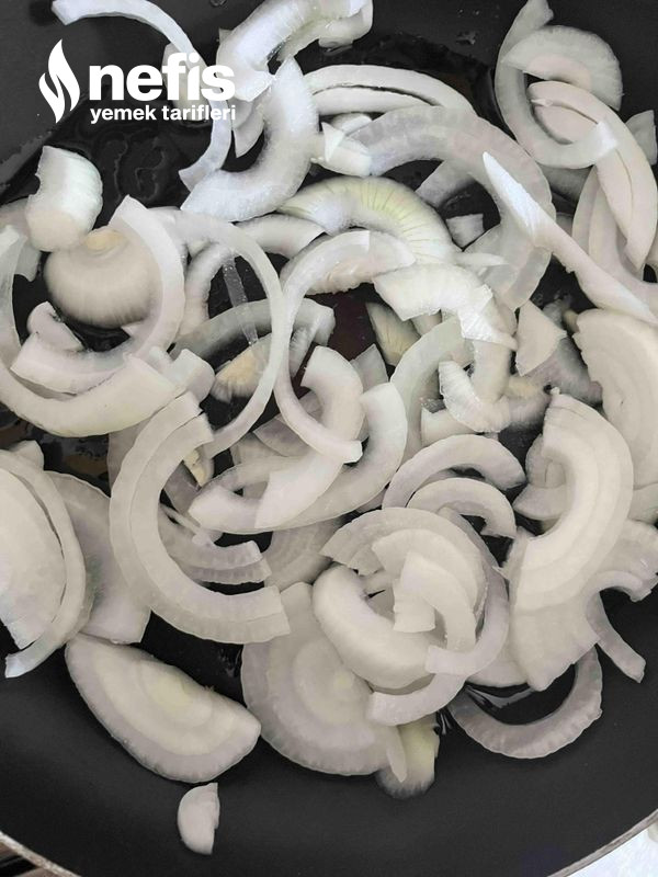 - Önce zeytinyağımızla soğanları kavuruyoruz.