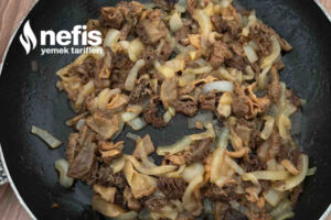 - Soğanlar pembeleşince daha evvelden sirkeli suda beklettiğimiz ve yeterlice yıkadığımız mantarlarımızı ek ediyoruz.