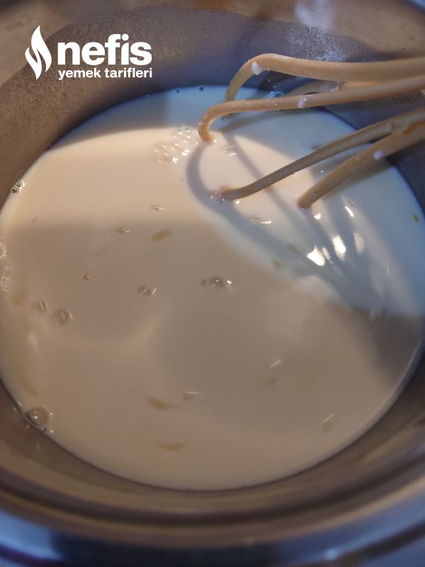 2. Süt ve unu karıştırma kabına alıp güzelce karıştırıyoruz ve kremayı pişireceğimiz tencereye süzerek koyuyoruz.