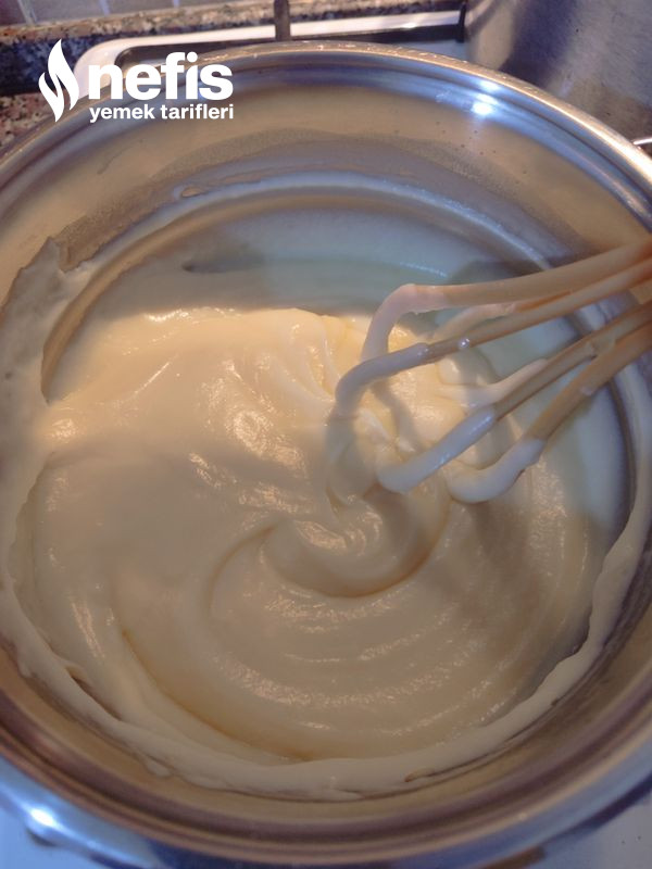 5. Pişen kremaya vanilin ve margarini ekliyip güzelce çırpıyoruz.