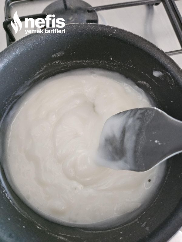 - Bu ortada, pirinç püresi hazırlayın. 375 ml (2 1/2 su bardağı) su ve beyaz pirinç ununu küçük bir tencerede birleştirin.