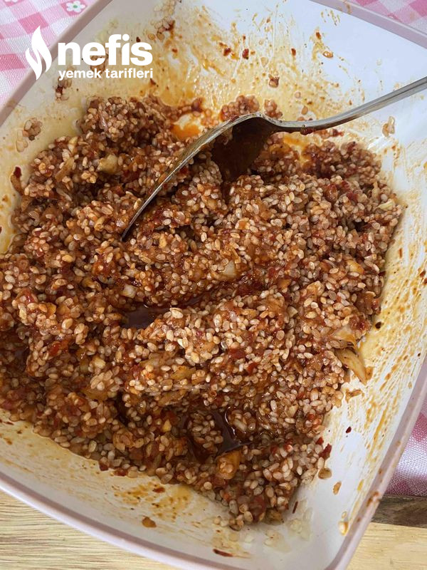 - Sonra iç harcı için pirinçleri yıkayıp ,içinedilimlediğimiz soğan, sarımsak ,baharatları ekleyelim.