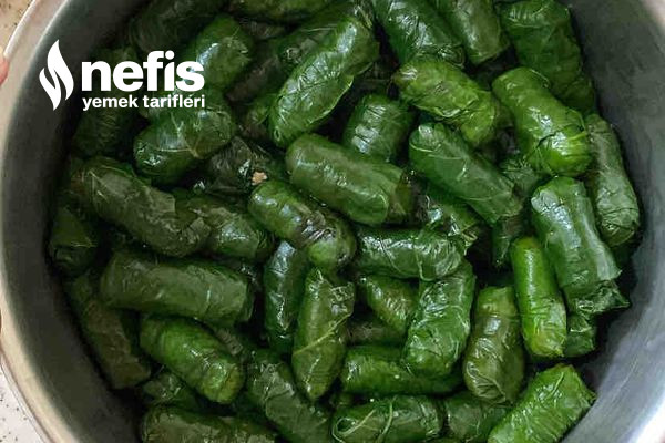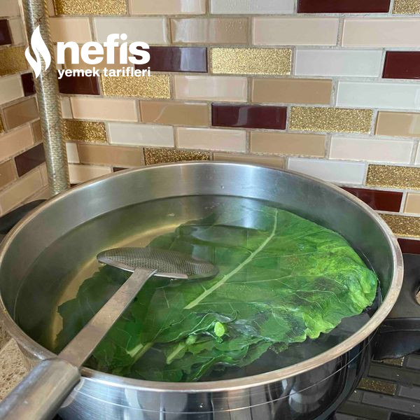 - Haşlanan suya 1 tatlı kaşığı tuz serpiştiriyoruz. Ve elimize bir kaç yaprak (5-6 tane ) suyu içine koyuyoruz ve altılı üstlü haşlıyoruz çok fazla haşlamaya dikkat edin yapraklarınız sararken yırtılmasın.