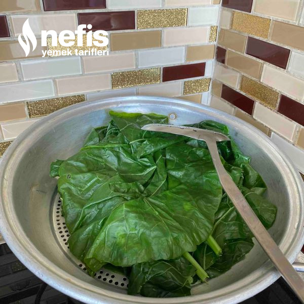 - Haşlanan yapraklarımızı bir süzgece koyuyoruz.