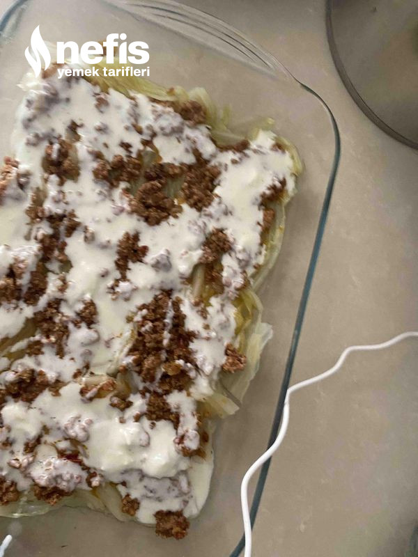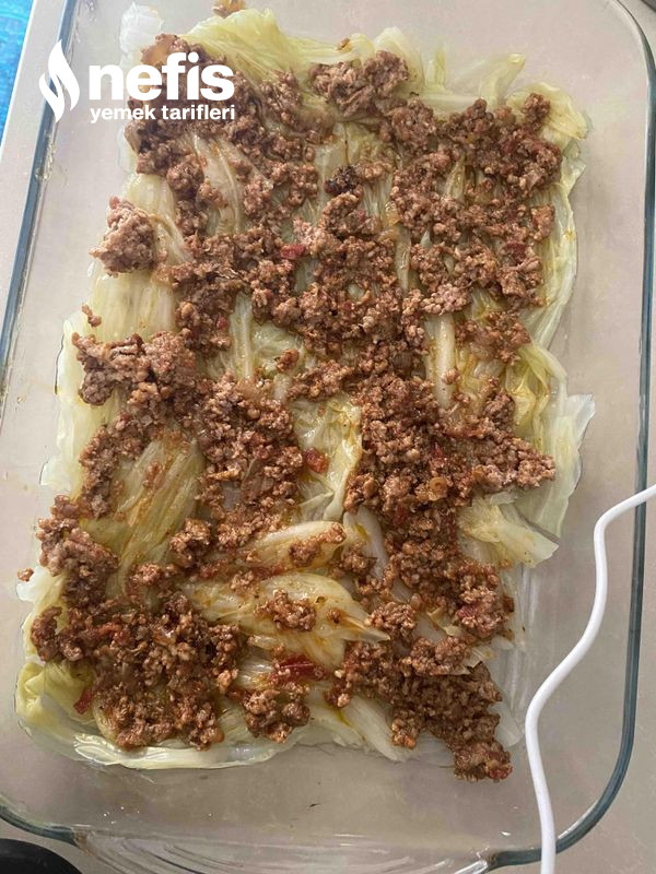 - Daha sonra başemal sos sonra tekrar lahana, kıymalı harç ,başemal diye devam edilir.