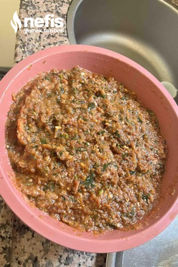 6. Tuzu, yağı, biber salçası ve toz biber atılıp uygunca yoğurulur.