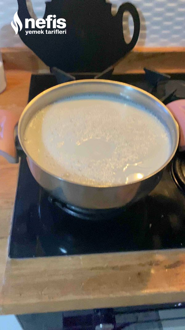 1. Laktozsuz sütü bir tencerede kaynatıyoruz orta ara kepçe yardımıyla karıştırıyoruz.