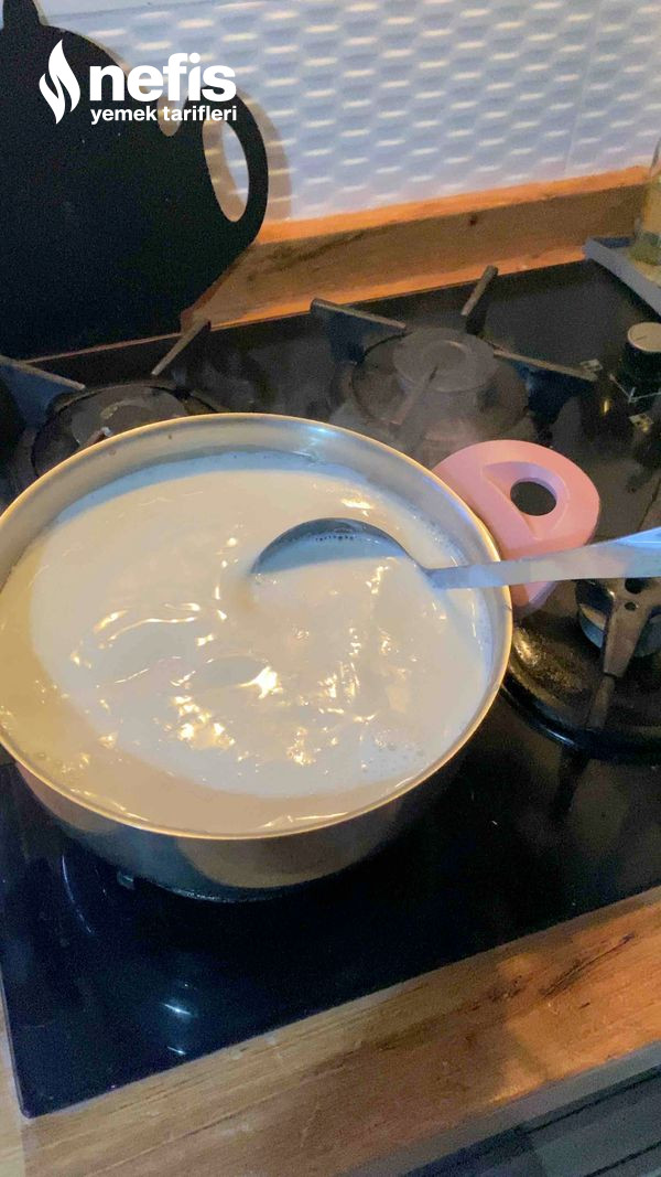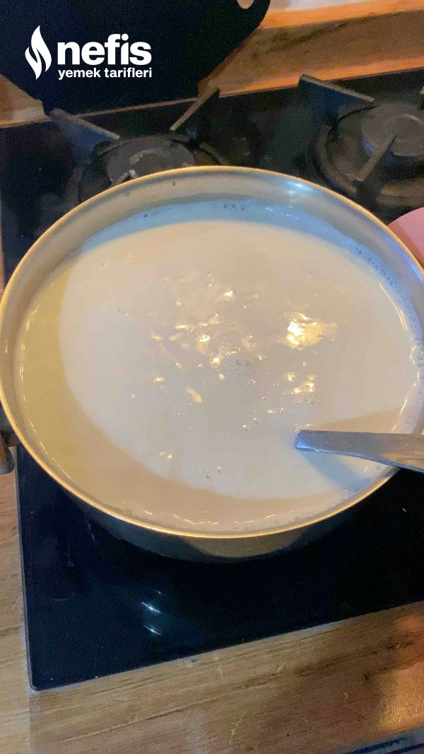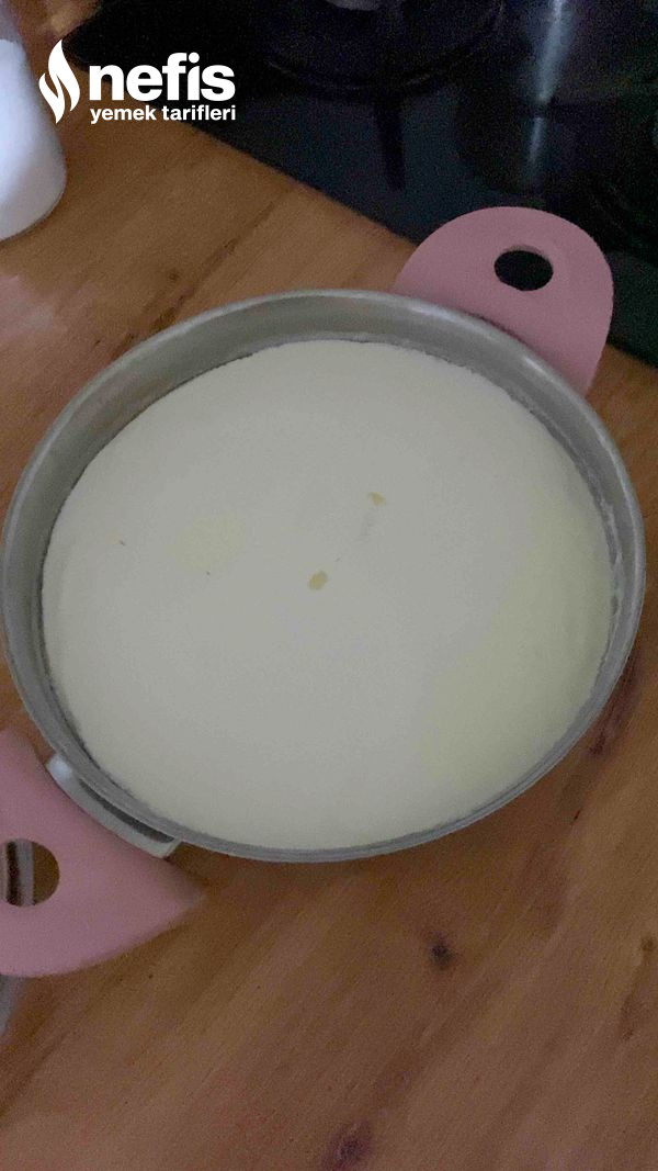3. Soğuyan sütümüzle laktozsuz yoğurdu seyrelterek tenceremize boşaltıyoruz.