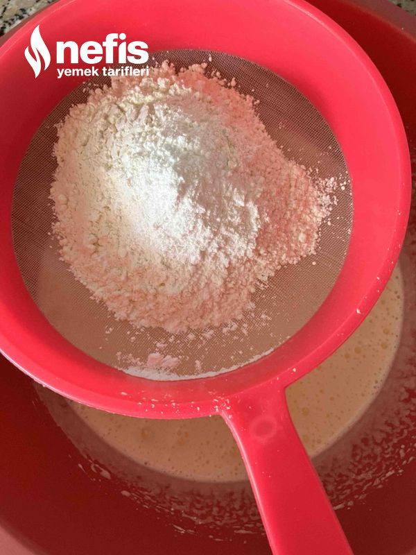 - Un, vanilya ve kabartma tozunu elekten geçirerek karışıma ekleyip spatula yardımı ile karıştıralım.