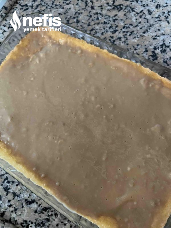 - Soğuyan kekin üzerine muhallebiyi ekleyelim.