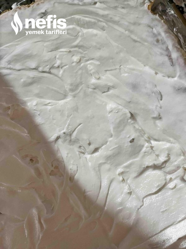 - Üzerine krem şantiyi ekleyelim. Dolapta 3-4 saat dinlendirelim.