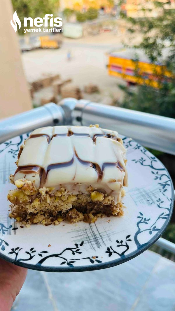 - Kekin üzerine krema her tarafına gelecek halde dağıtılır, beyaz çikolata krema karışımıda son olarak üzerine eklenir kenarları süslenir.