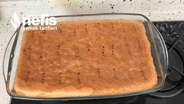 - İlk sıcaklığı çıkan kek çatallanır hazırladığımız karışım dökülür.