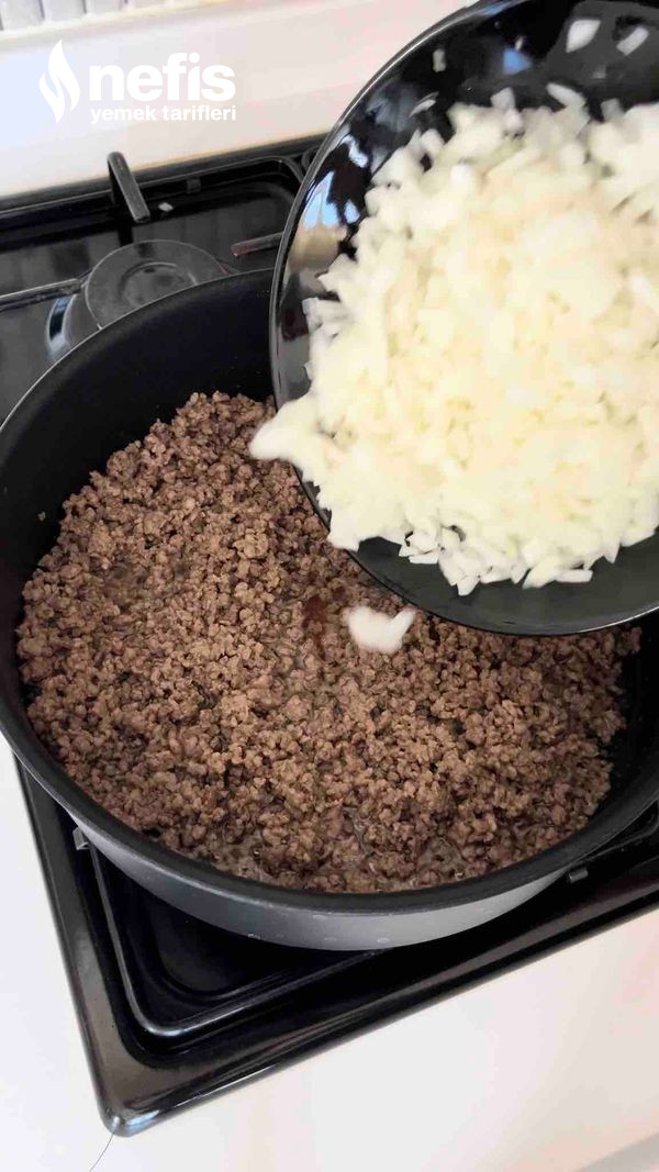 - Bir tavaya sıvı yağımızı alıp kıymayı ekleyelim.