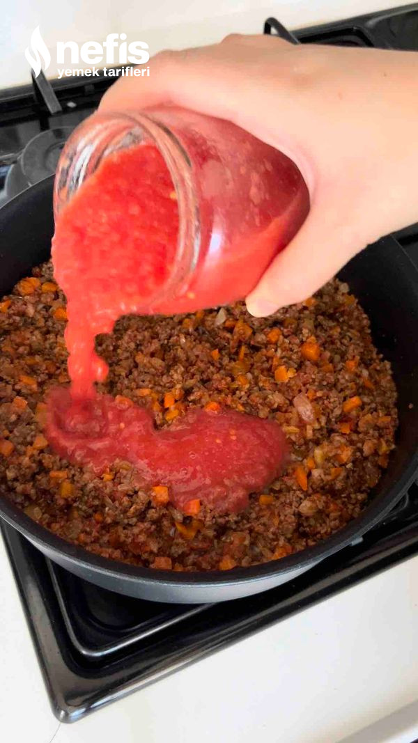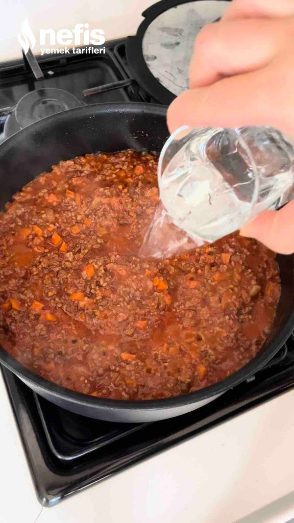 - En son 1 bardak sıcak suyuda ekledikten sonra 1-2 dk pişirip ocağı kapatalım hafif sulu olmalı ki lazanya yapraklarının ıslanıp pişmesini sağlasın.