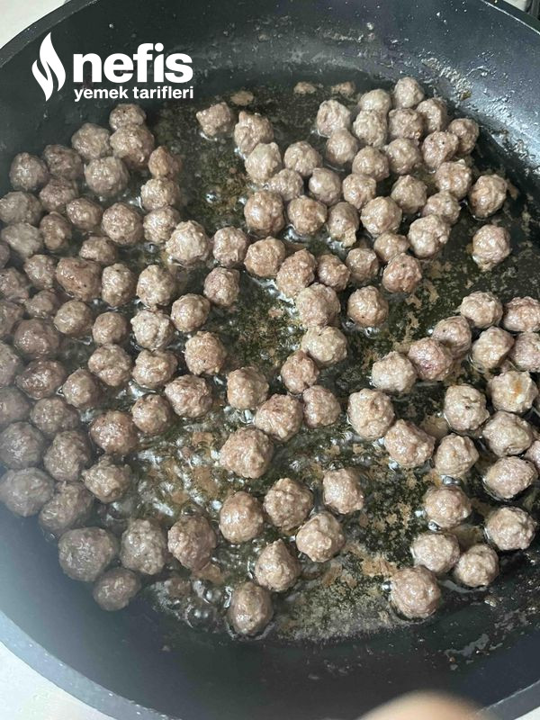 8. Tavaya sıvı yağı ekleyelim. Yağ kızınca köfteleri ekleyip, kızartalım. En son naneyi ekleyip onunda kızarmasını sağlayalım.