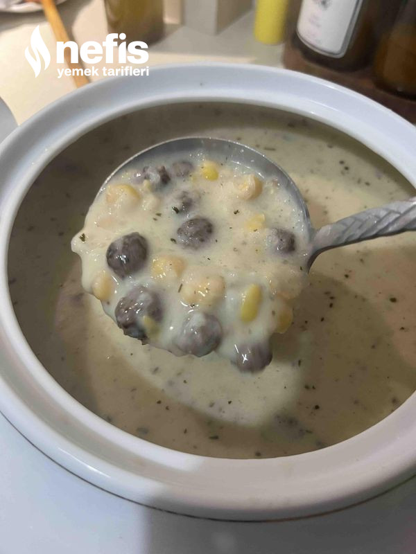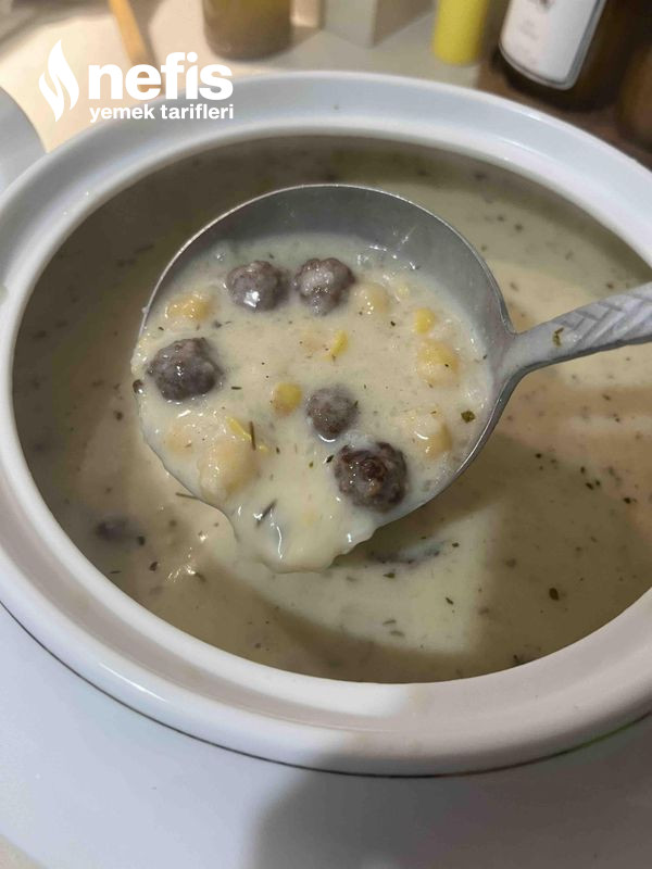 9. Çorbaya köfteleri ekleyelim ve karıştıralım.