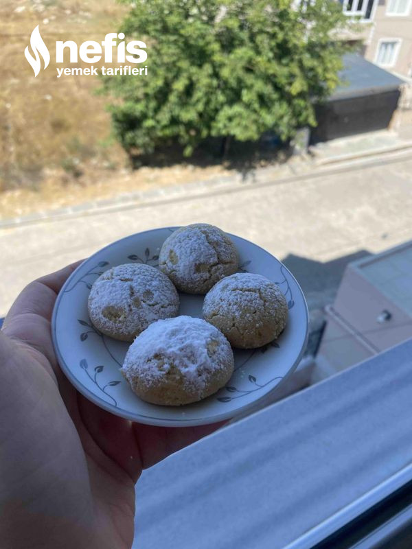 5. Kurabiyeler çekindikten sonra koyacağımız kaba alıp üzerine pudra şekeri sepeleyelim.